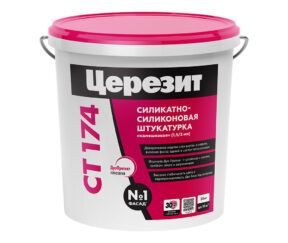Первоначальная цена составляла 693 ₽.693 ₽Текущая цена: 693 ₽.шт.Штукатурка фасадная Церезит СТ 174 силикатно-силиконовая камешковая 1,5 мм база А белая 25 кг
