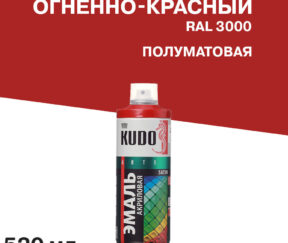 Первоначальная цена составляла 432 ₽.432 ₽Текущая цена: 432 ₽.шт.Эмаль аэрозольная Kudo Satin огненно-красная полуматовая RAL 3000 520 мл