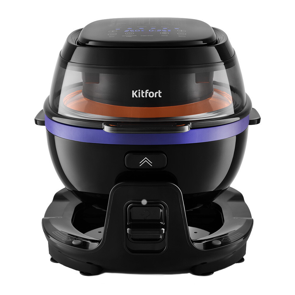 Современный классический аэрогриль Kitfort КТ-2218 позволяет готовить большинство продуктов без добавления масла. При помощи системы циркуляции горячего воздуха продукты равномерно обжариваются со всех сторон и получаются нежными внутри и с хрустящей корочкой снаружи. Аэрогриль оснащен электронным управлением и дисплеем, а также у прибора есть 6 автоматических программ. На дисплее отображаются температура, время приготовления и скорость вращения вентилятора. Продукты готовятся в специальной чаше с антипригарным покрытием. В чаше есть перегородка, которая выполняет роль мешалки, вам не надо будет перемешивать пищу во время приготовления. Ножки с присосками сделаны для того, чтобы при открывании крышки гриль не опрокидывался. По окончании приготовления аэрогриль автоматически отключается.