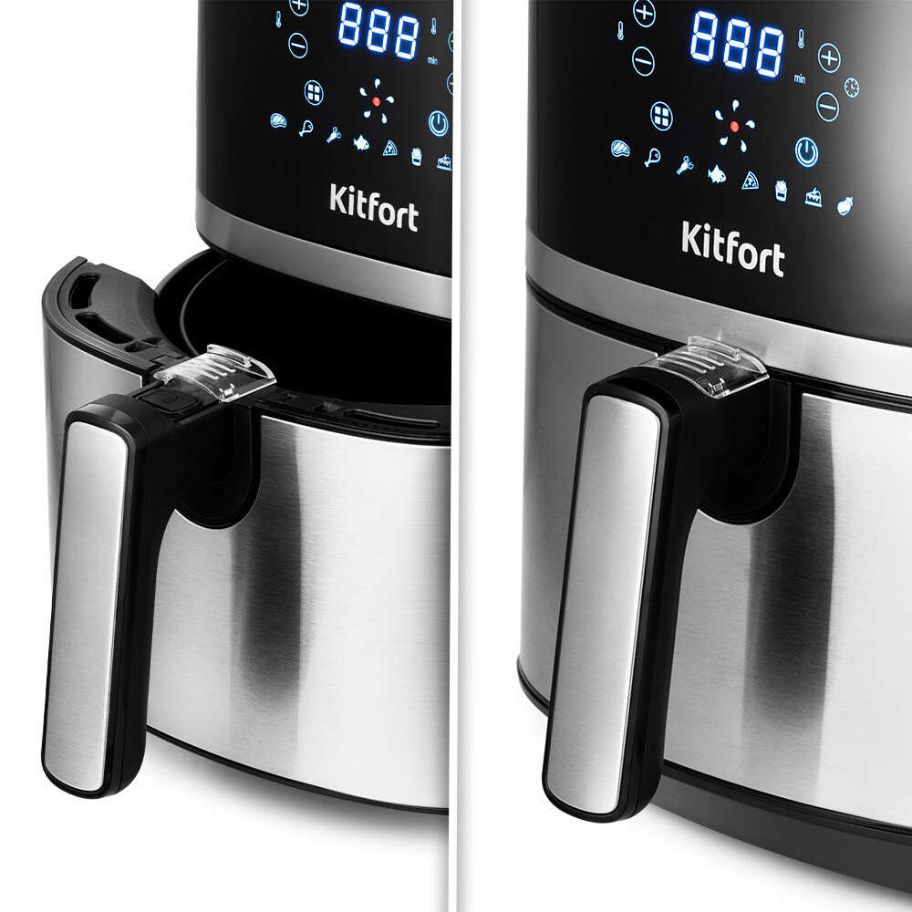 Аэрогриль Kitfort КТ-2221 может использоваться как аэрогриль, а также как аэрофритюрница и духовка и позволяет готовить большинство продуктов с минимальным количеством масла или вовсе без его добавления. Аэрогриль сочетает в себе стильный дизайн и продуманный функционал. Он обладает мощностью 1500 Вт, благодаря чему приготовление не займет много времени. Вместительная корзина на 3,3 л. Многофункциональная панель управления. Аэрогриль имеет 9 автоматических программ, остается только выбрать одну из них: стейк, курица, пицца, выпечка, картофель фри, морепродукты, рыба или овощи. Также возможно задать вручную нагрев от 80°C до 200°C и время приготовления от 1 до 60 минут. Продукты готовятся в специальной корзине, которая вставлена в поддон. Благодаря системе циркуляции горячего воздуха, продукты обжариваются равномерно со всех сторон, получ…