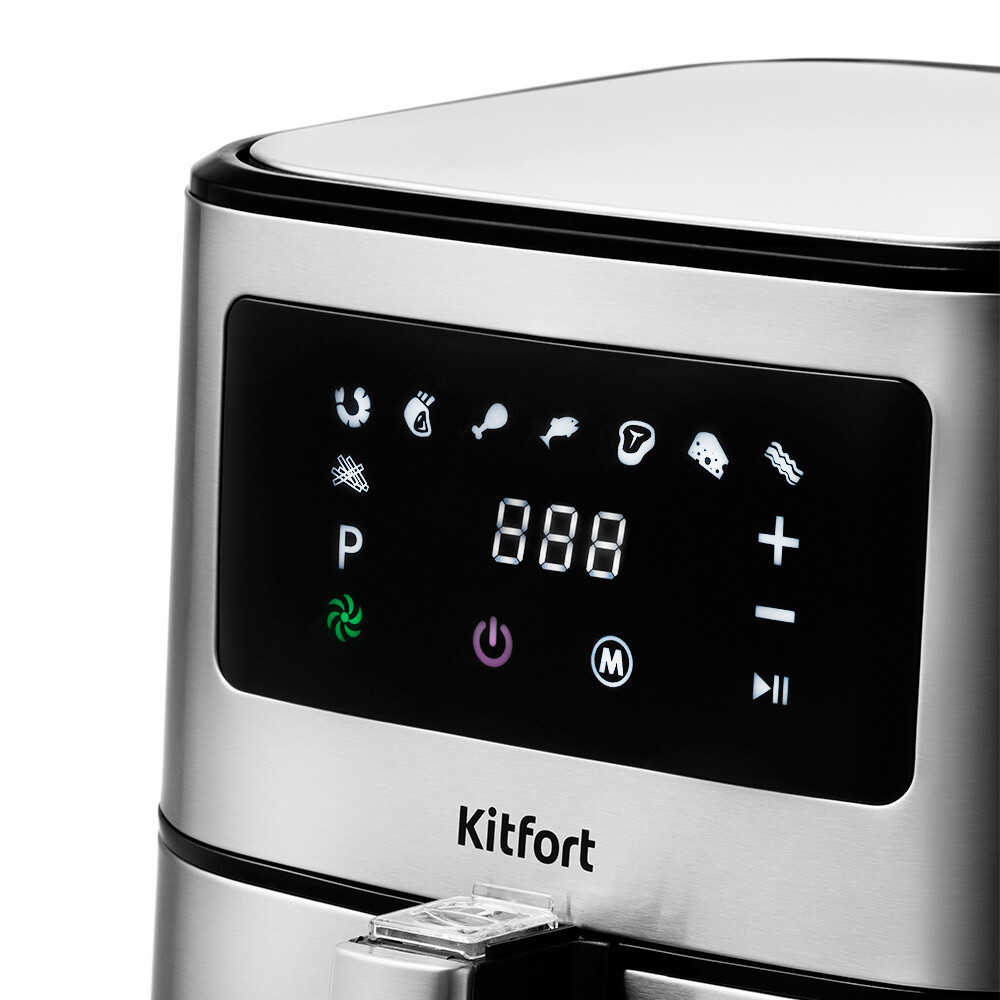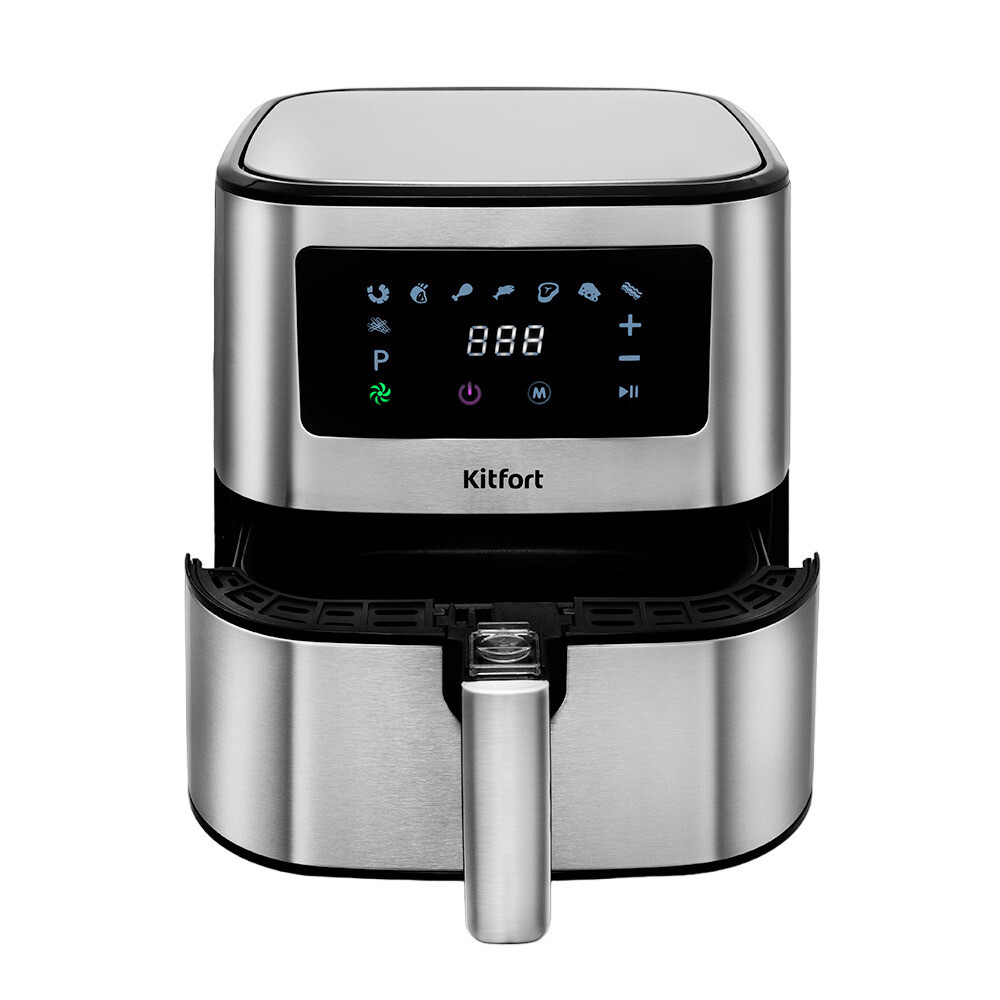 Аэрогриль с текстурированным корпусом Kitfort КТ-2228 может использоваться как аэрогриль, аэрофритюрница и духовка.