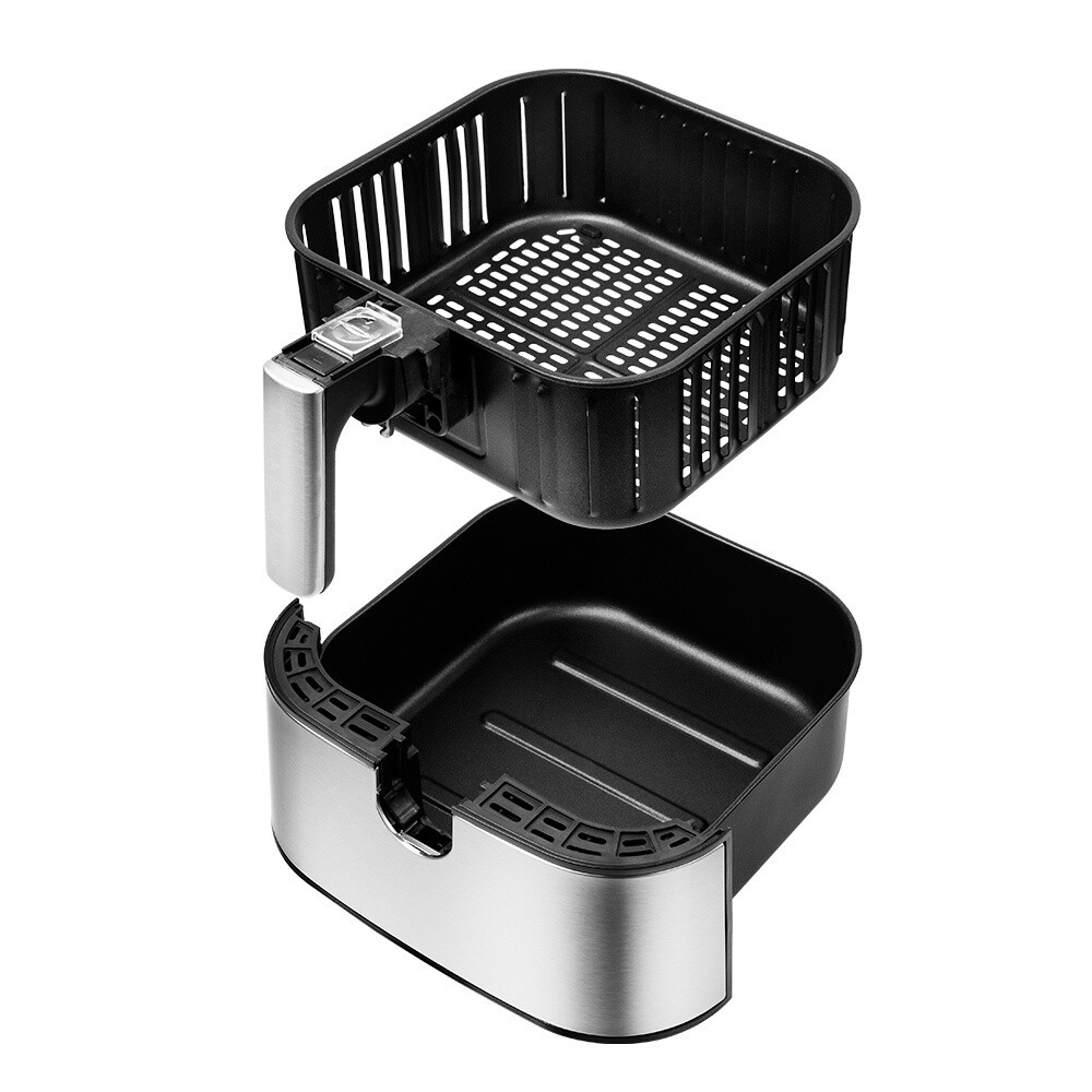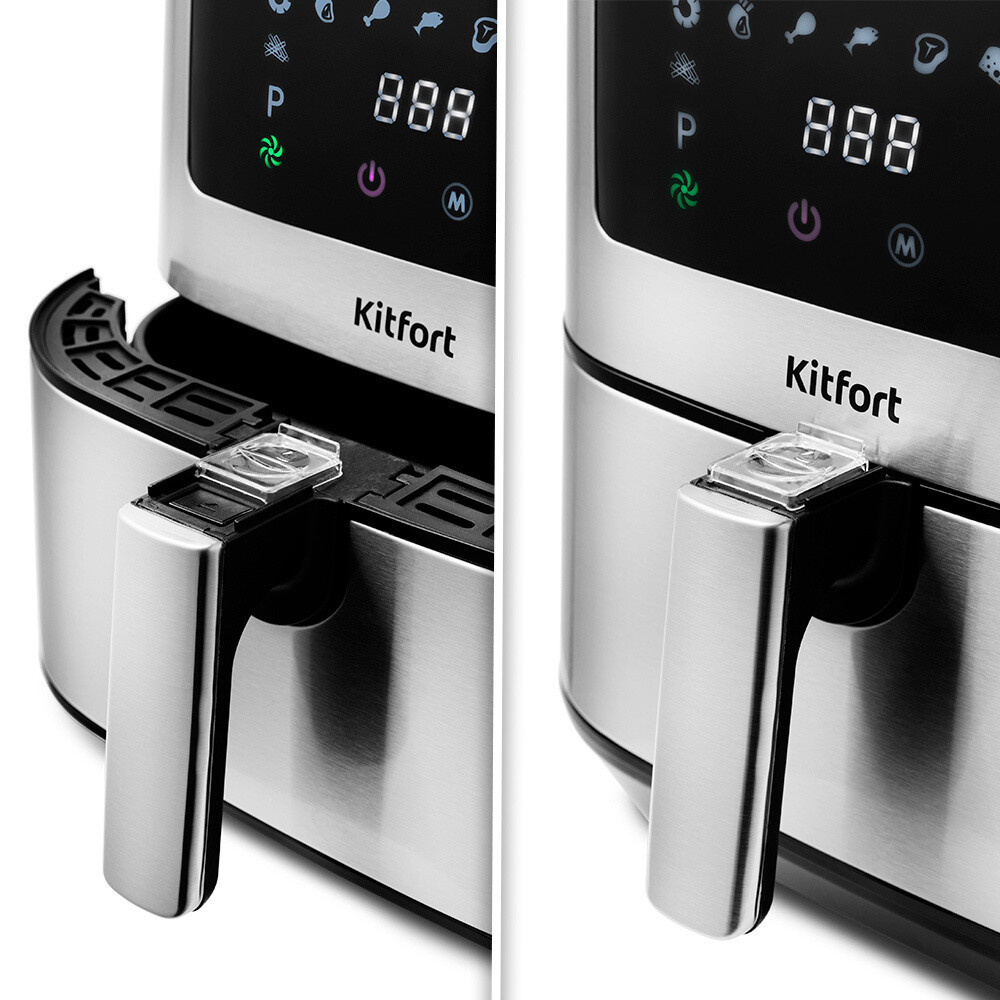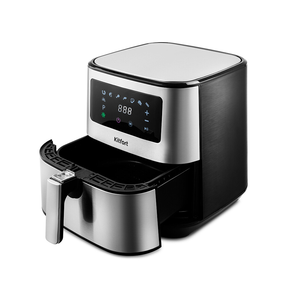 Аэрогриль с текстурированным корпусом Kitfort КТ-2228 может использоваться как аэрогриль, аэрофритюрница и духовка. Это позволяет готовить большинство продуктов с минимальным количеством масла или вовсе без его добавления. Он обладает внушительной мощностью 1700 Вт, благодаря чему приготовление не займет много времени. Вместительная корзина на 5,5 л. Благодаря системе циркуляции горячего воздуха, продукты обжариваются равномерно со всех сторон, получаясь при этом нежными внутри и с хрустящей корочкой снаружи. Аэрогриль оснащен сенсорным управлением, он имеет 9 автоматических программ и программу с ручными настройками. Программы позволяют использовать готовые шаблоны настроек. Во избежание случайного выпадения корзины из поддона, на ручке корзины имеется специальная кнопка для ее извлечения. Съемный поддон и корзина имеют антипригарное по…