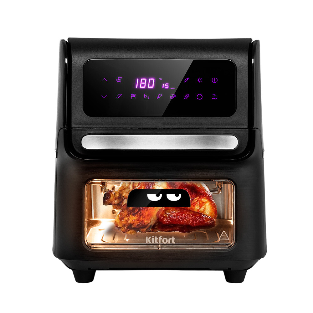 Аэрогриль Kitfort KT-2236 является универсальным устройством для приготовления пищи, он совмещает в себе множество функций: аэрогриль, духовка, шашлычница и сушилка для овощей и фруктов.