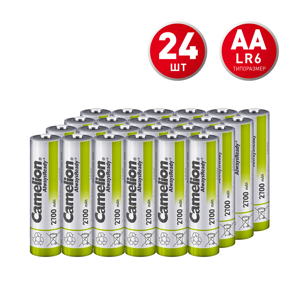 Аккумулятор Camelion АА пальчиковый HR6 1,2 В Ni-MH 2700 мАч (24 шт.) (NH-AA2700BP2)