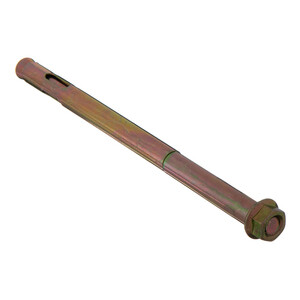Оцинкованное покрытие обеспечит защиту от коррозии. Анкерный болт с гайкой (втулочный анкер) оснащен фиксирующей гильзой, длина которой равна размерам стального стержня. На хвостовой части шпильки выполнена клинообразная головка. При завинчивании гайки она смещается по резьбовой части. В результате перемещения происходит распирание втулки. Конструктивные особенности такого вида крепежа позволяют использовать его в легких видах бетонов с ячеистой структурой, а также в кирпиче, изготовленном из обожженной глины.