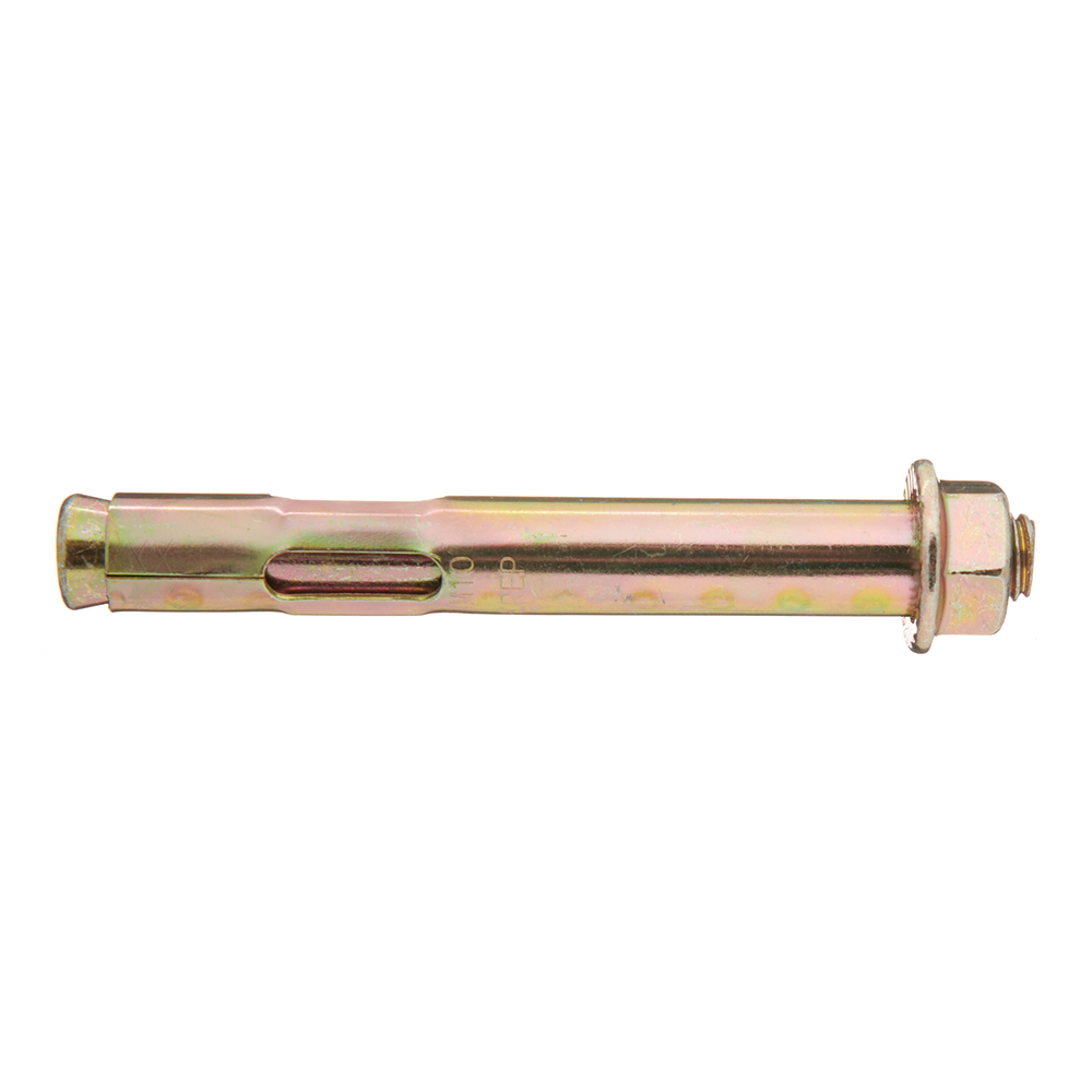Оцинкованное покрытие обеспечит защиту от коррозии. Анкерный болт с гайкой (втулочный анкер) оснащен фиксирующей гильзой, длина которой равна размерам стального стержня. На хвостовой части шпильки выполнена клинообразная головка. При завинчивании гайки она смещается по резьбовой части. В результате перемещения происходит распирание втулки. Конструктивные особенности такого вида крепежа позволяют использовать его в легких видах бетонов с ячеистой структурой, а также в кирпиче, изготовленном из обожженной глины.