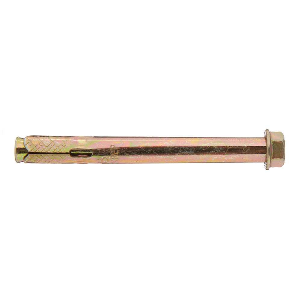 Оцинкованное покрытие обеспечит защиту от коррозии. Анкерный болт с гайкой (втулочный анкер) оснащен фиксирующей гильзой, длина которой равна размерам стального стержня. На хвостовой части шпильки выполнена клинообразная головка. При завинчивании гайки она смещается по резьбовой части. В результате перемещения происходит распирание втулки. Конструктивные особенности такого вида крепежа позволяют использовать его в легких видах бетонов с ячеистой структурой, а также в кирпиче, изготовленном из обожженной глины.