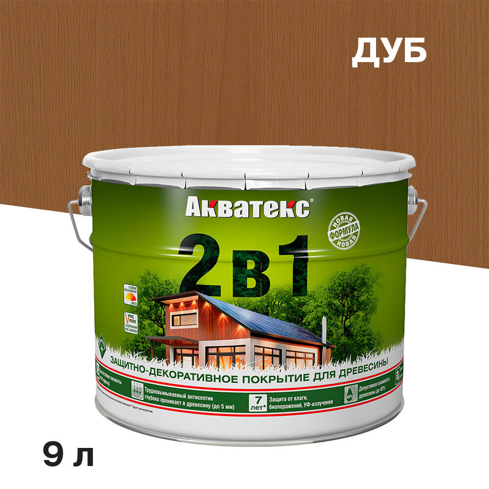 Антисептик Акватекс 2 в 1 биозащитный для дерева дуб 9 л