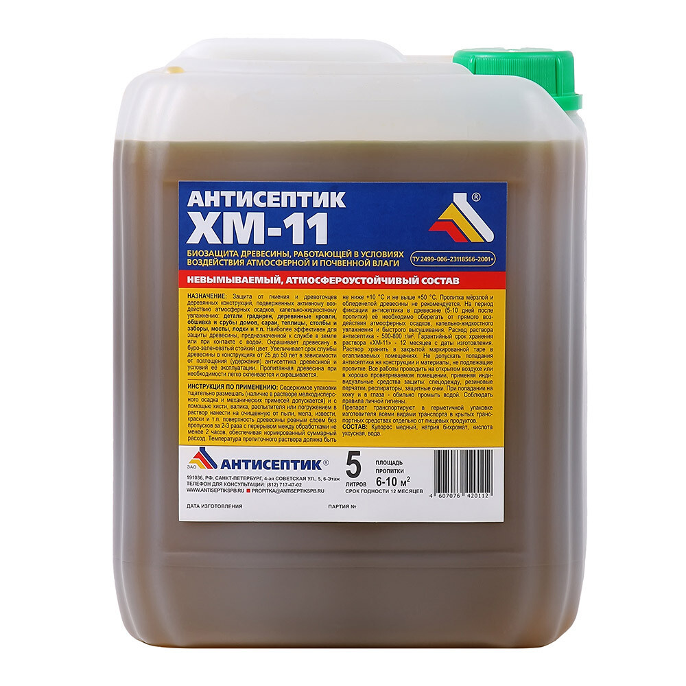 Антисептик ХМ-11 для дерева биозащитный 5 л зеленый