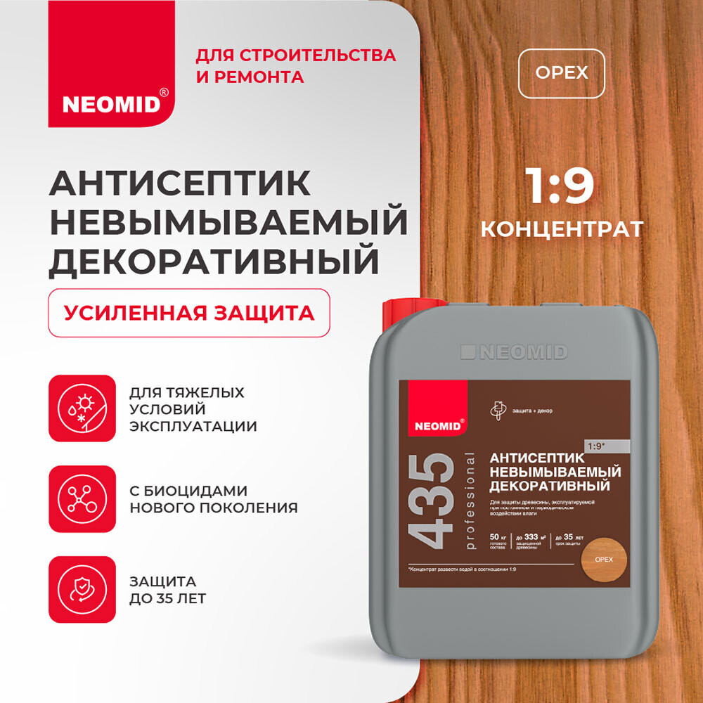 Антисептик Neomid 435 невымываемый для дерева биозащитный концентрат 1:9 5 кг орех