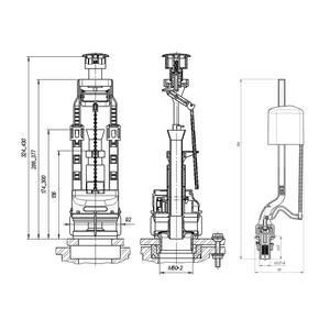 Характеристика товара: сливной клапан предназначен для использования в смывных бачках высотой от 315 до 430 мм и с диаметром отверстия в крышке бачка 40. Наполнительный клапан — нижний клапан противодавления с диаметром штуцера 1/2″.