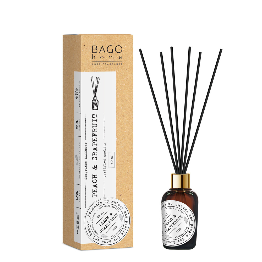 Аромадиффузор с палочками Bago home Персик и грейпфрут 40 мл