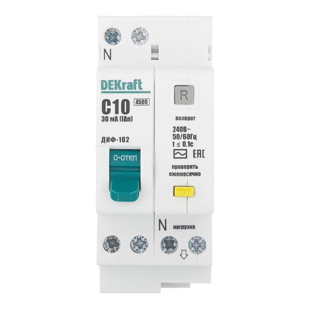 Автомат дифференциальный Dekraft ДИФ-102 10А 1P+N тип AC 30 мА 4,5 кА компактный (16002DEK)