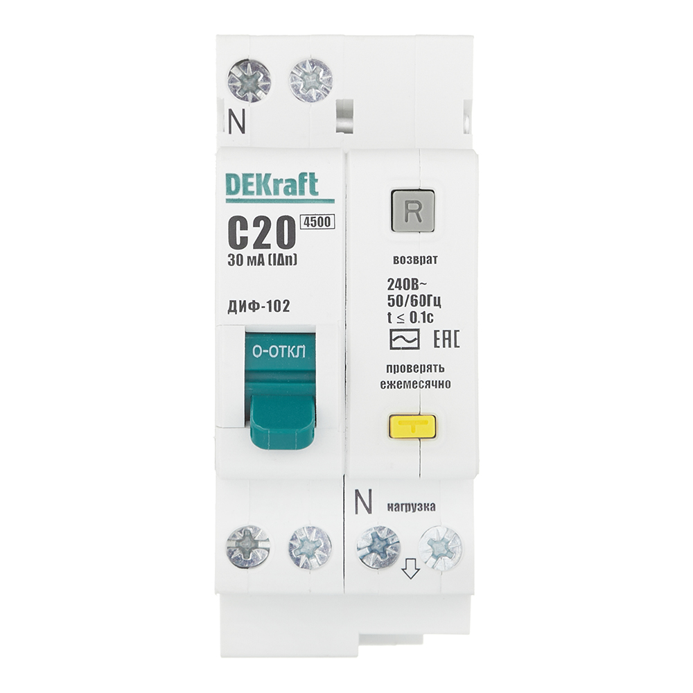 Автомат дифференциальный Dekraft ДИФ-102 20А 1P+N тип AC 30 мА 4,5 кА компактный (16004DEK)
