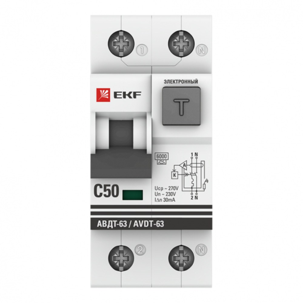 Автомат дифференциальный EKF PROxima АВДТ-63 50А 1P+N тип AC 30 мА 6 кА (DA63-50-30e-AC)