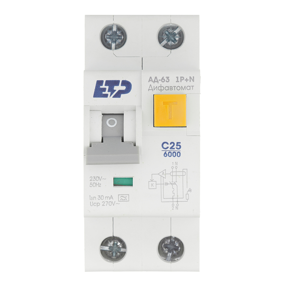 Автомат дифференциальный ETP АД-63 25А 1P+N тип A 30 мА 6 кА компактный (19055)