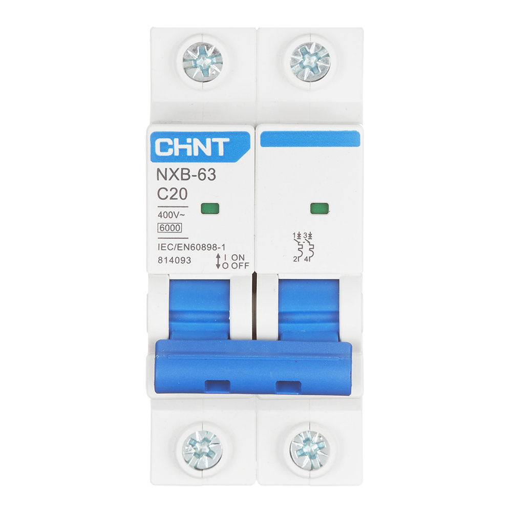 Автоматический выключатель модульный Chint NXB-63 2P 20А тип C 6 кА 400 В (814093)