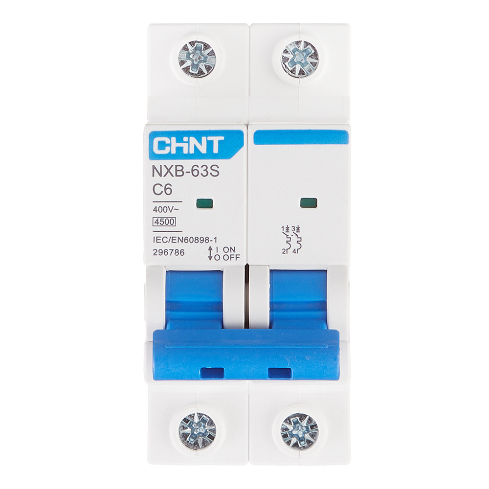 Автоматический выключатель модульный Chint NXB-63S 2P 6А тип C 4,5 кА 400 В (296786)