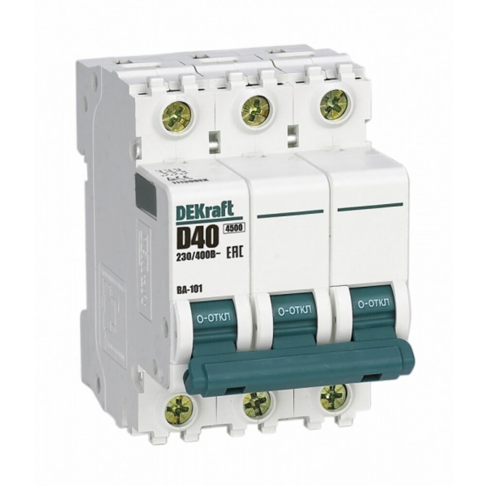 Автоматический выключатель модульный Dekraft ВА-101 3P 40А тип D 4,5 кА 400 В (11130DEK)