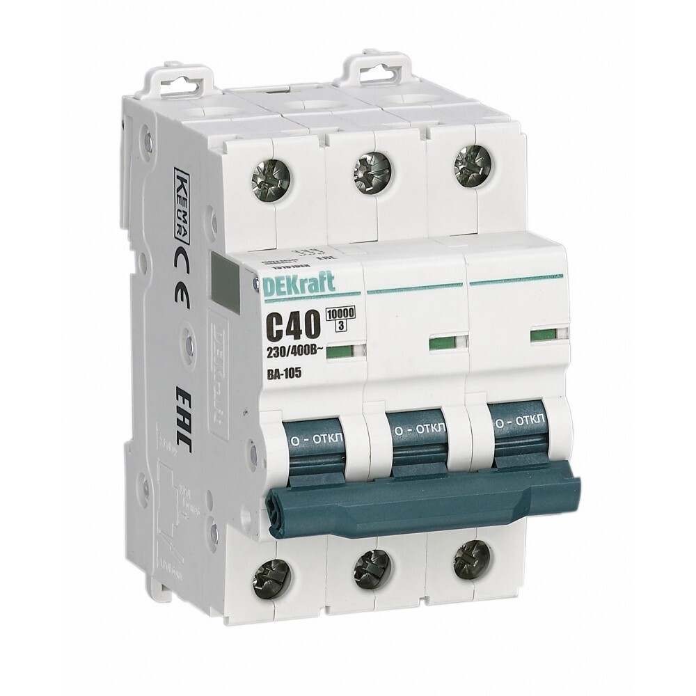 Автоматический выключатель модульный Dekraft ВА105-3P-040A-C 3P 40А тип C 10 кА 230 В (13181DEK)