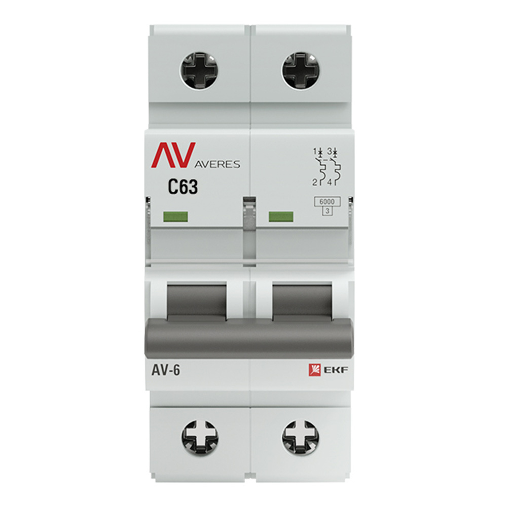 Автоматический выключатель модульный EKF Averes AV-6 2Р 63А тип C 6 кА 230 В (mcb6-2-63C-av)