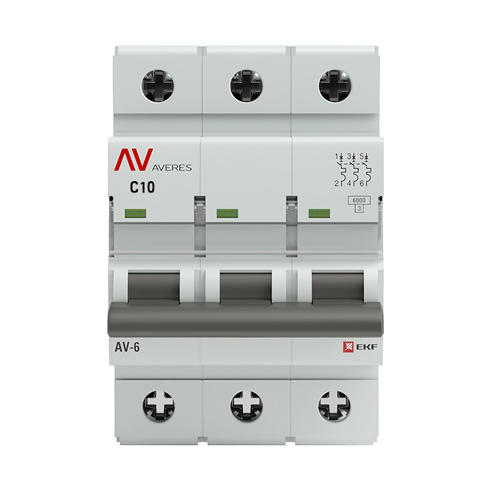 Автоматический выключатель модульный EKF Averes AV-6 3Р 10А тип C 6 кА 400 В (mcb6-3-10C-av)