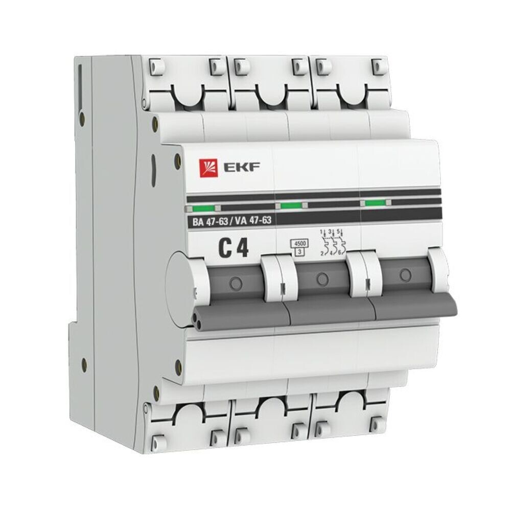 Автоматический выключатель модульный EKF PROxima ВА 47-63 3P 4А тип C 4,5 кА 400 В (mcb4763-3-04C-pro)