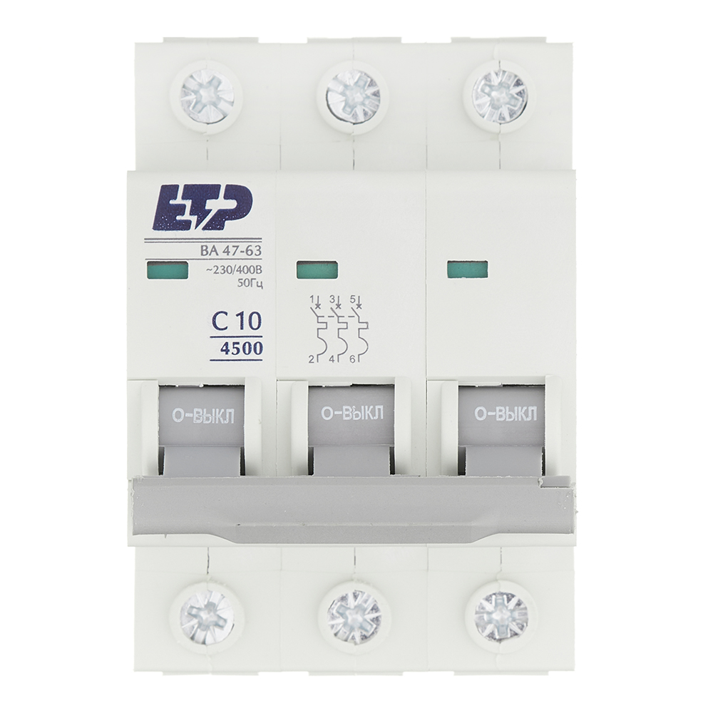 Автоматический выключатель модульный ETP ВА 47-63 3P 10А тип C 4,5 кА 400 В (11315)