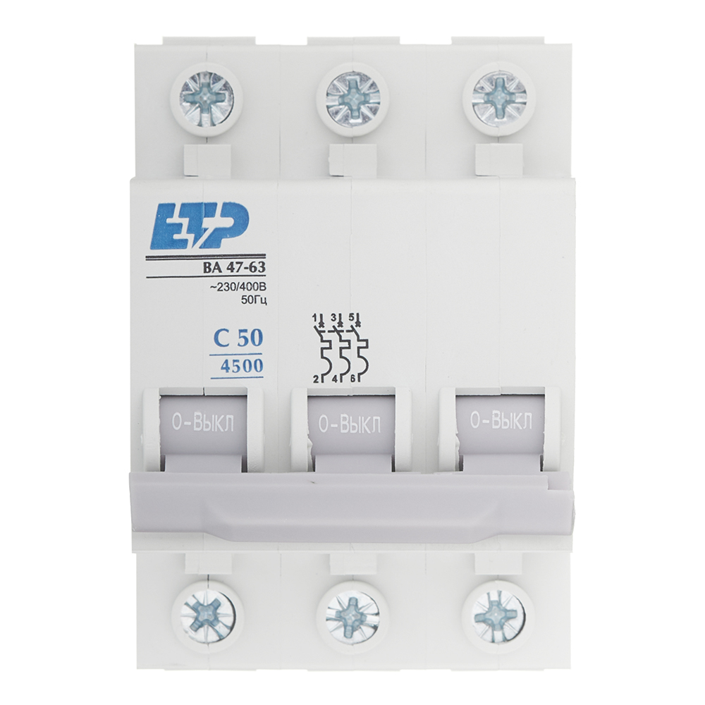 Автоматический выключатель модульный ETP ВА 47-63 3P 50А тип C 4,5 кА 400 В (11327)