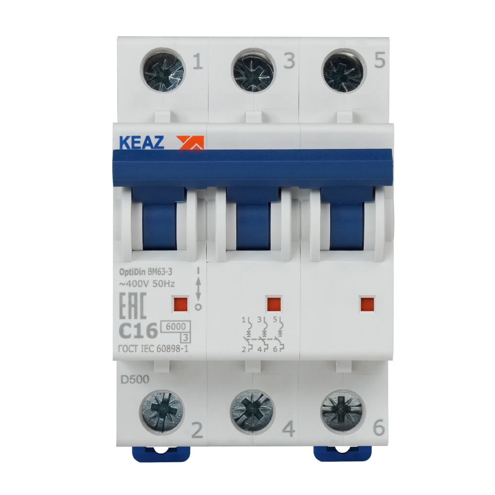Автоматический выключатель модульный КЭАЗ OptiDin 3P 16А тип C 6 кА 380 В (260791)