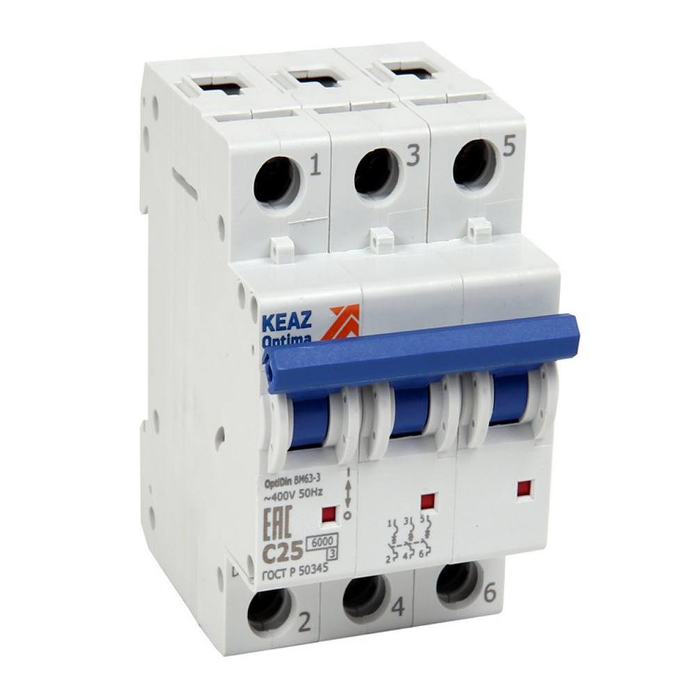 Автоматический выключатель модульный КЭАЗ OptiDin 3P 20А тип C 6 кА 380 В (260793)