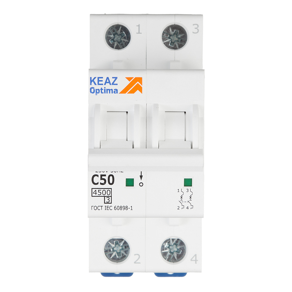 Автоматический выключатель модульный КЭАЗ OptiDin BM63 2P 50А тип C 4,5 кА 230/400 В (326808)