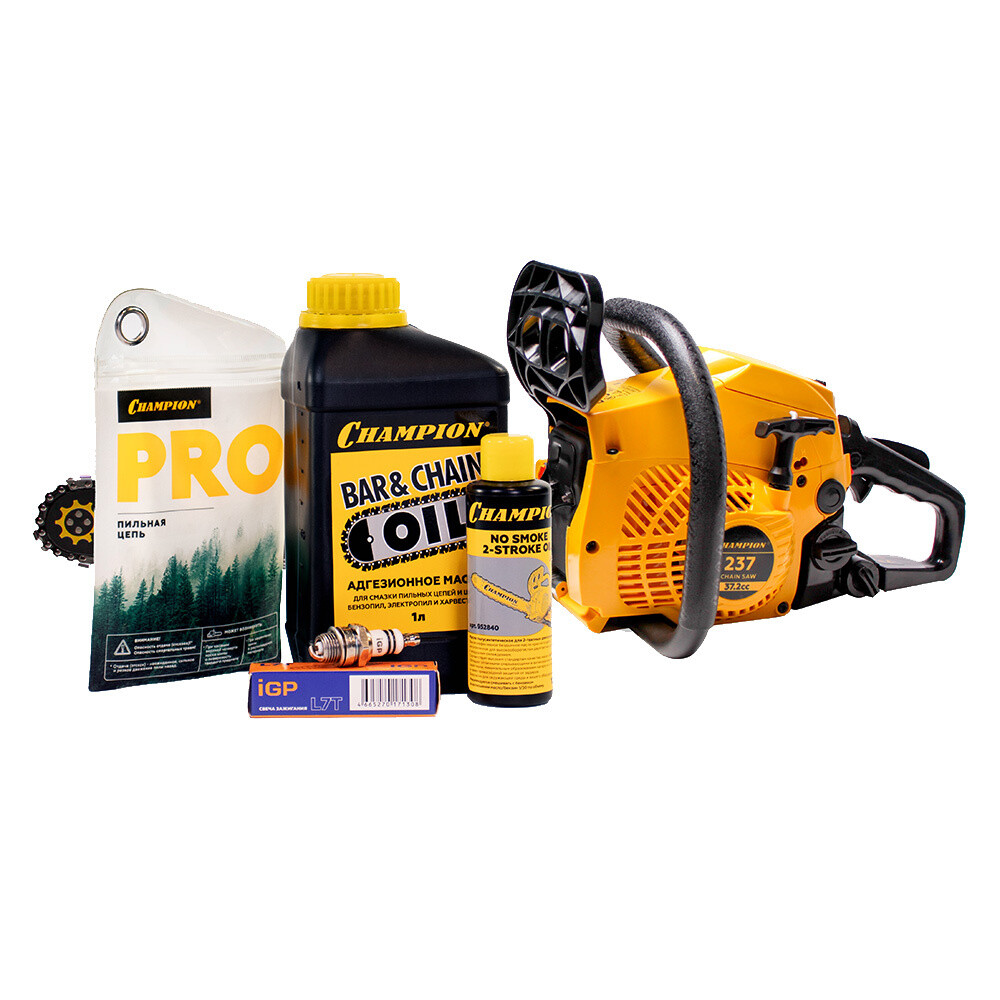 Бензопила Champion 237 2,04 л.с. 16″ шаг 3/8″ паз 1,3 мм 56 звеньев + подарочный набор