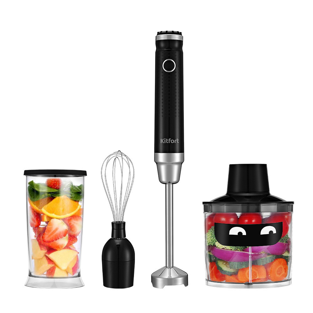 Погружной блендер Kitfort KT-3502 — универсальное кухонное устройство с которым сможете приготовить множество блюд для себя, своих родных и друзей. Прибор имеет функции измельчителя, погружного блендера, а также в комплекте есть венчик для взбивания. Погружной блендер предназначен для смешивания ингредиентов в однородную массу и приготовления фруктовых и фитнес-напитков, супов-пюре, соусов, муссов, молочных коктейлей, детского питания, каш и многого другого. Прибор имеет удобное управление на верхней части устройства находится регулятор скорости. В комплекте со стаканом блендера идет специальная крышка. Чтобы снизить вибрацию и шум при работе устройства — наденьте резиновую крышку на дно стакана. Затем, после смешивания ингредиентов вы можете закрыть стакан этой же крышкой и убрать на хранение. Нож блендера, венчик и лезвия ножа чаши измельчителя выполнены из нержавеющей стали, что обеспечивает их долгий срок службы.