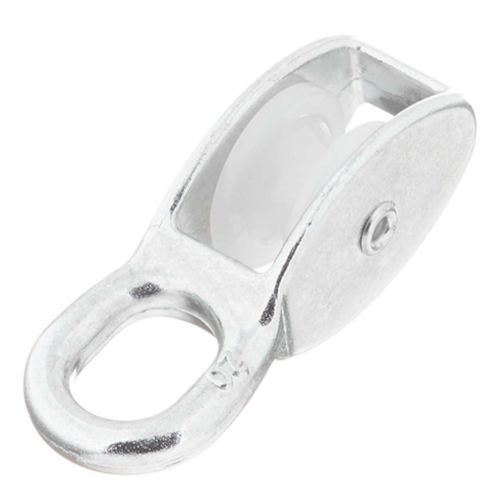 Предназначен для изменения направления движения груза, а также для его перемещения, используется совместно с тросом диаметром от 2 до 6 мм. Блок имеет один ролик.