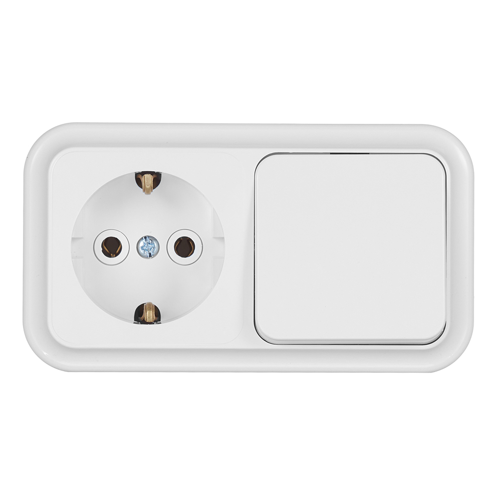 Блок выключатель и розетка Svet одноклавишный накладной белый (EV0362-5120)