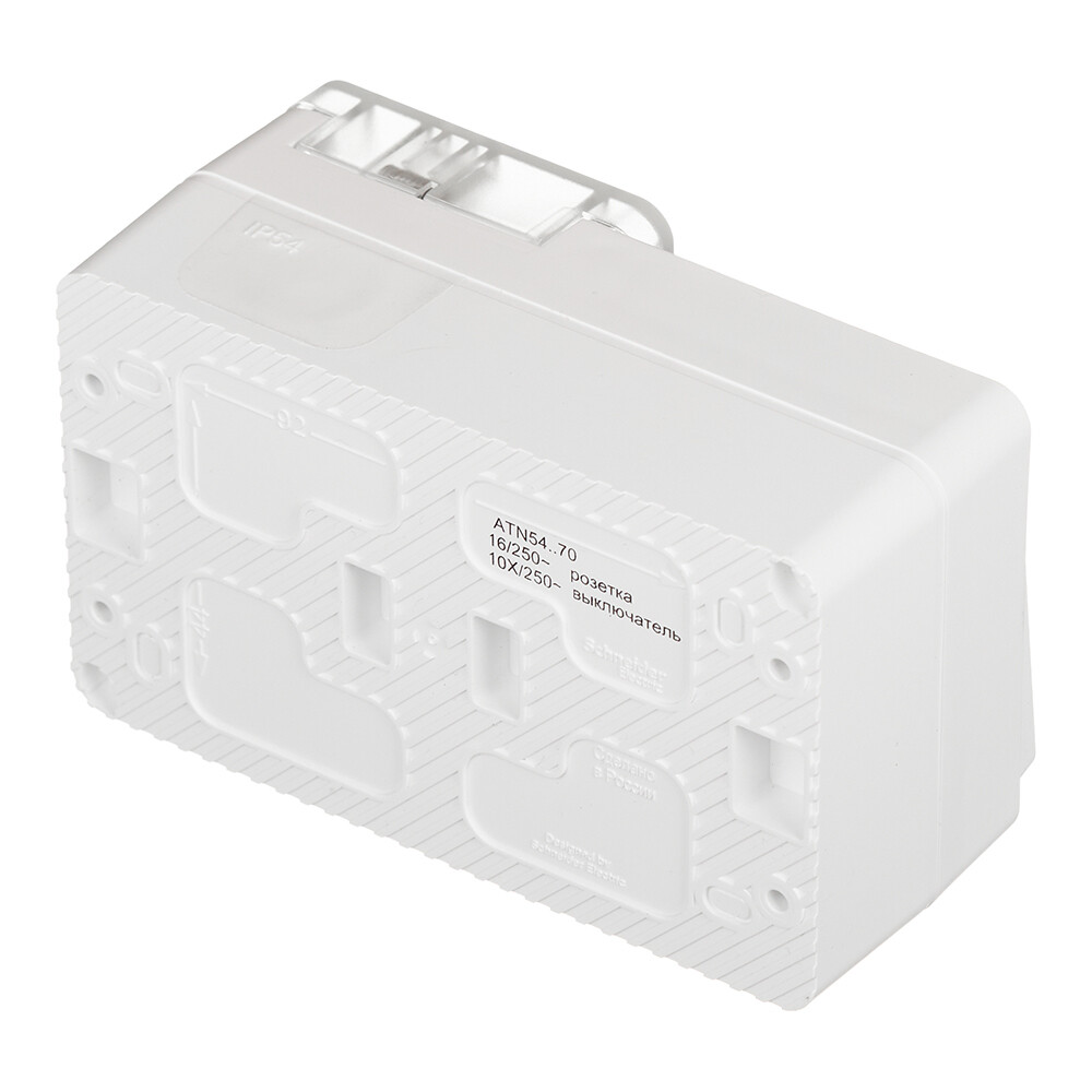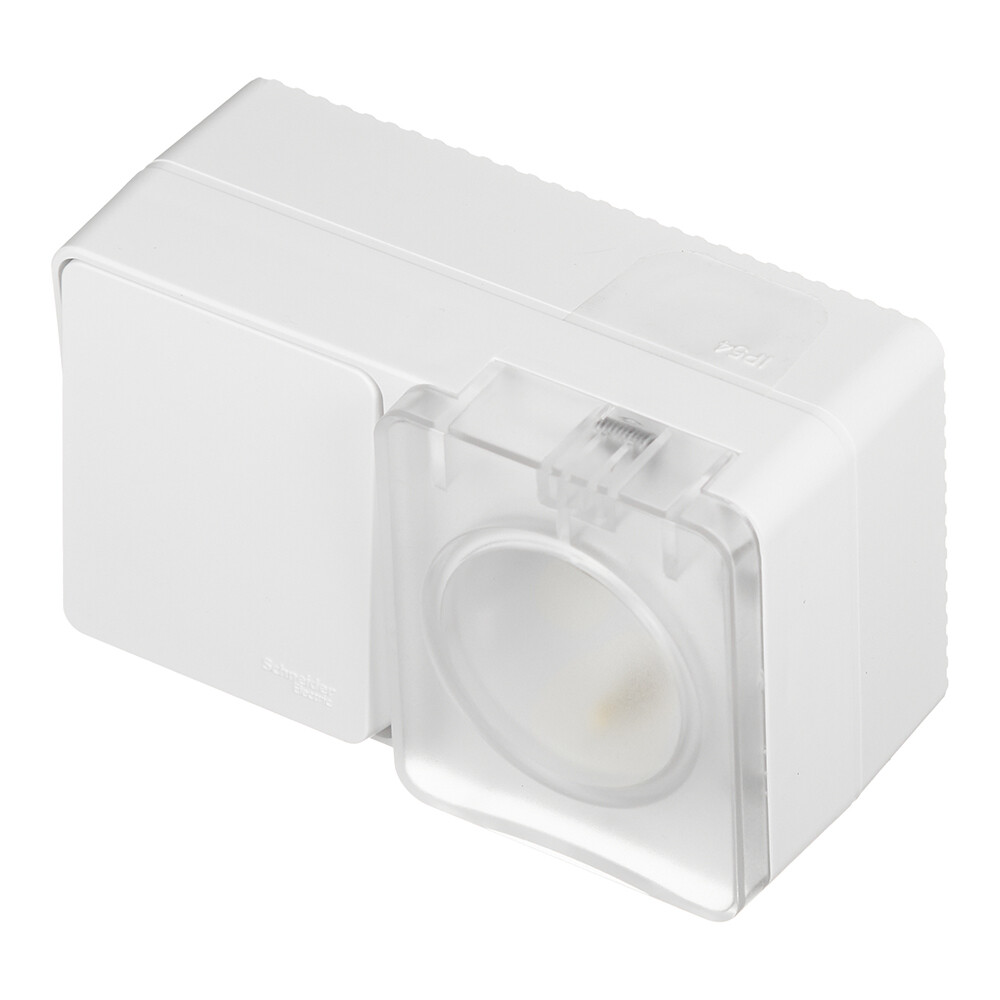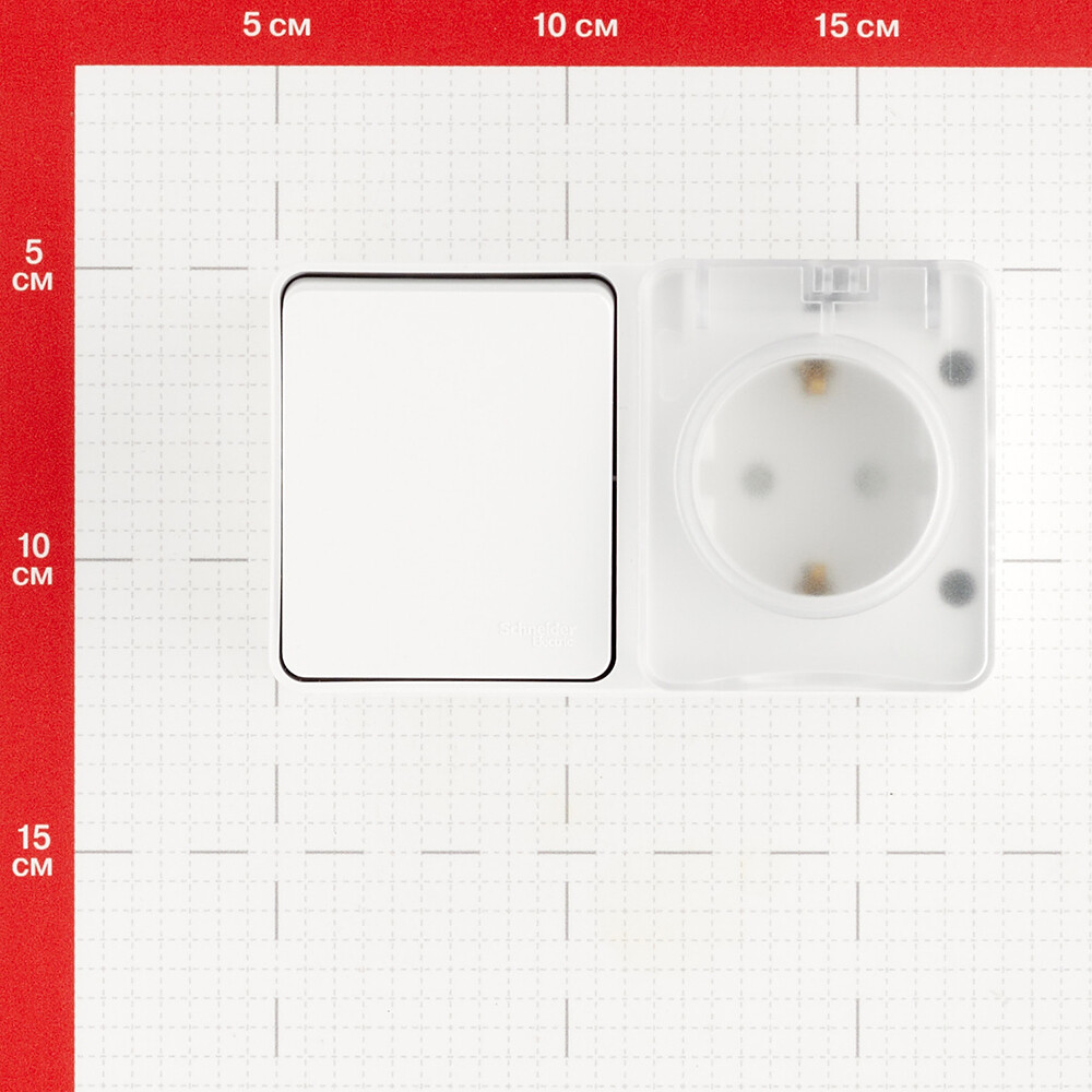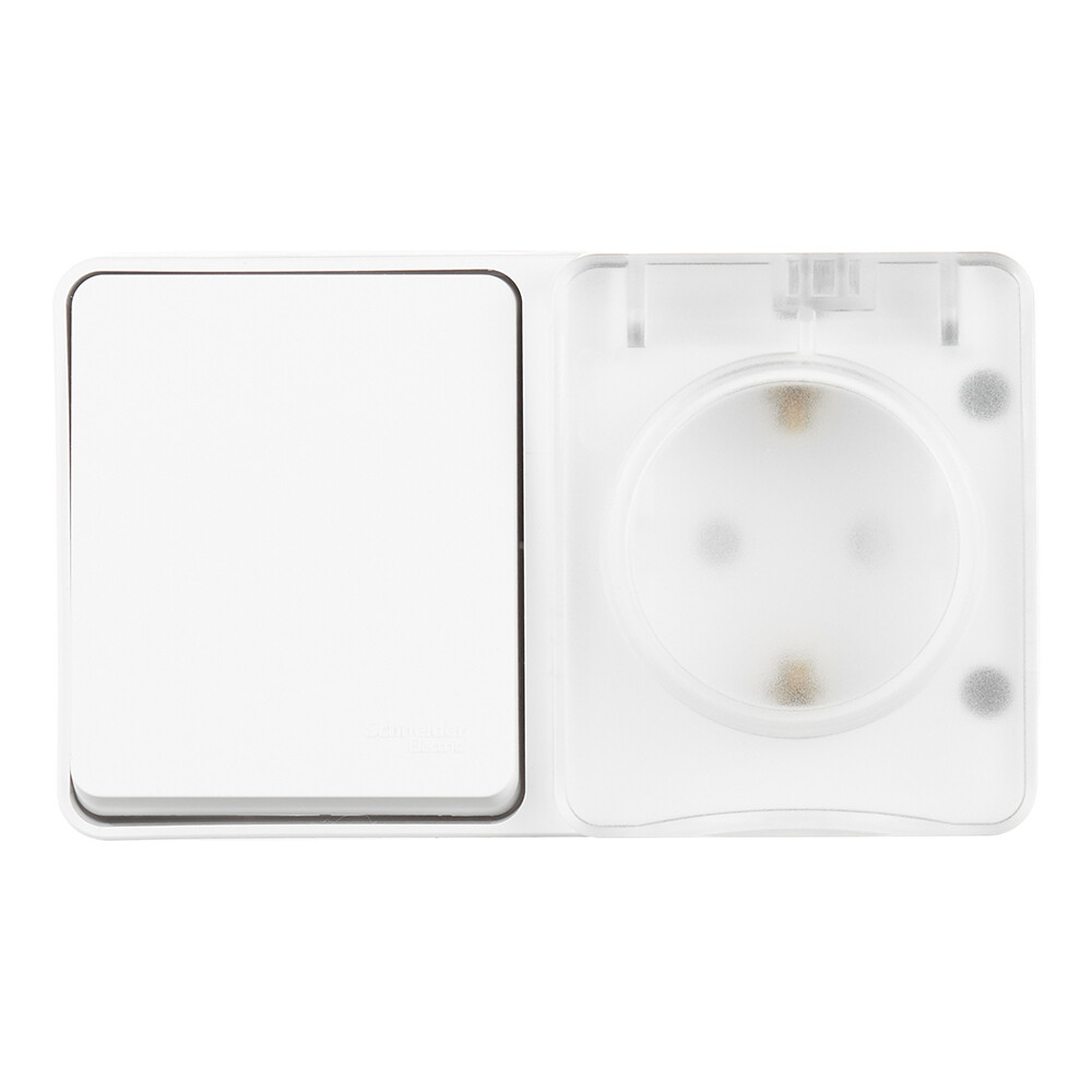 Блок выключатель и розетка Systeme Electric AtlasDesign Profi54 одноклавишный накладной белый (ATN540170)
