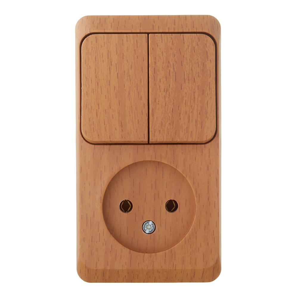 Блок выключатель и розетка Systeme Electric Этюд двухклавишный накладной бук (BPA16-205T)
