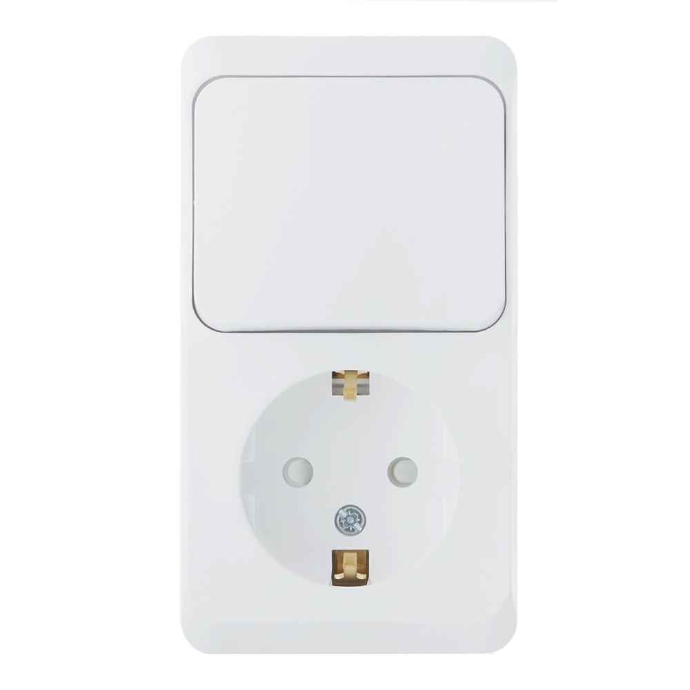 Блок выключатель и розетка Systeme Electric Этюд одноклавишный накладной белый (BPA16-201B)