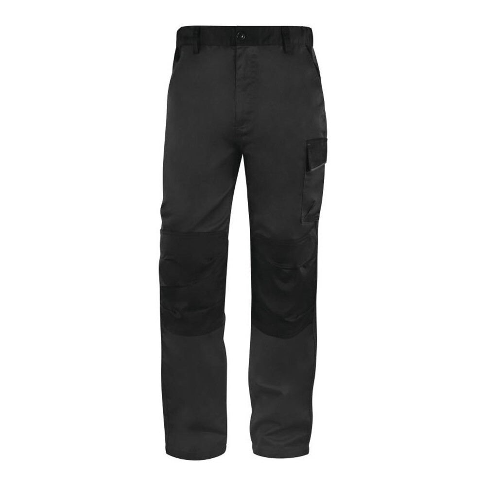 Брюки рабочие для защиты от общепроизводственных загрязнений и механических воздействий с застежкой на молнию и пуговицы, с большим количеством накладных и прорезных карманов (7 штук). Брюки изготовлены из уникальной ткани саржевого переплетения, характерная особенность ткани — диагональный рубчик, за счёт этого достигаются хорошая износостойкость, после стирки цвета не тускнеют, не выцветает на солнце. Ткань обладает высокой воздухопроницаемостью, в брюках не жарко. Материал — смесовая ткань TWILL (65% полиэстер, 35% хлопок), плотность 235 г/кв.м. Вставки по бокам из эластичной ленты для регулирования объёма по бёдрам. На поясе расположены шлевки для ношения с ремнем. Брюки имеют контрастную отделку. Тройные швы. На коленях расположены карманы для наколенников. Индивидуальная упаковка. Соответствие стандартам — ТР ТС 019/2011.