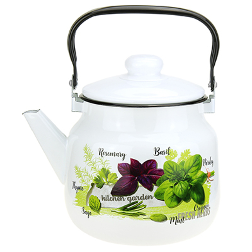 Чайник эмалированный Магнитогорская эмаль Базилик 3,5 л белый