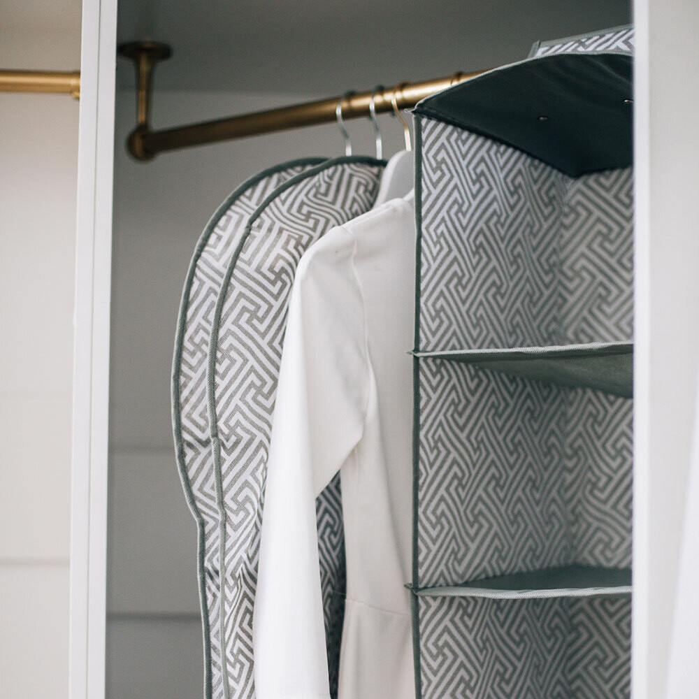 Чехол для одежды из нетканого материала идеально подойдет для бережного хранения вещей на вешалке.