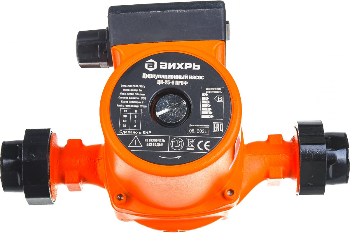 Циркуляционный насос для систем отопления Вихрь Проф ЦН-25-6 DN25 подъем 6 м 180 мм с гайками (68/7/2)
