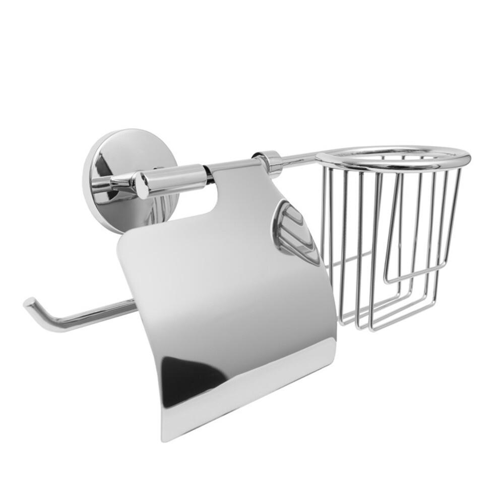 Подвесной хромированный закрытый бумагодержатель, дополненный подставкой для дезодоранта. Удобный в использовании и стильный аксессуар для любой ванной комнаты. Крепеж входит в комплект.