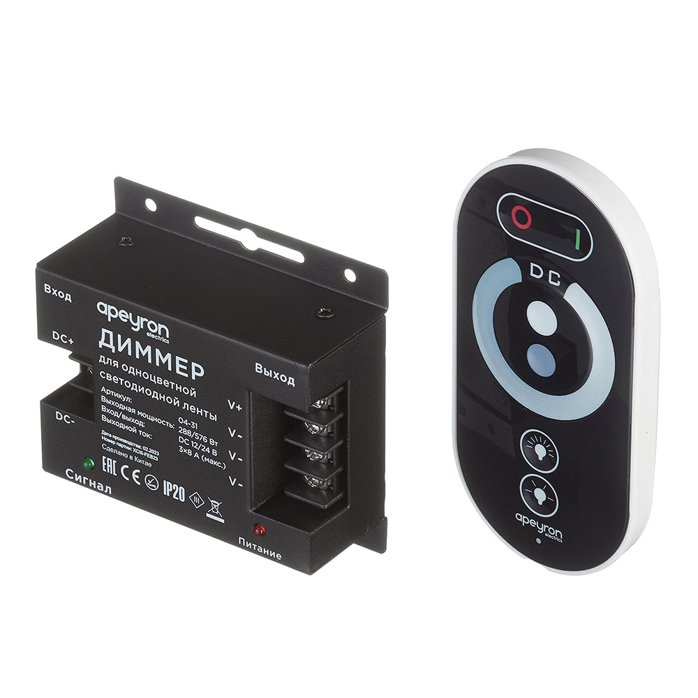 Диммер для светодиодной ленты 12/24 В 288/576 Вт IP20 с пультом Apeyron (04-31)
