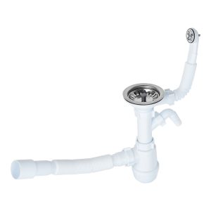 Сифон для мойки АНИ пласт 3 1/2х40 мм с выпуском d115 мм с отводом с переливом с соединением 40 мм (A1042SP15DIY)