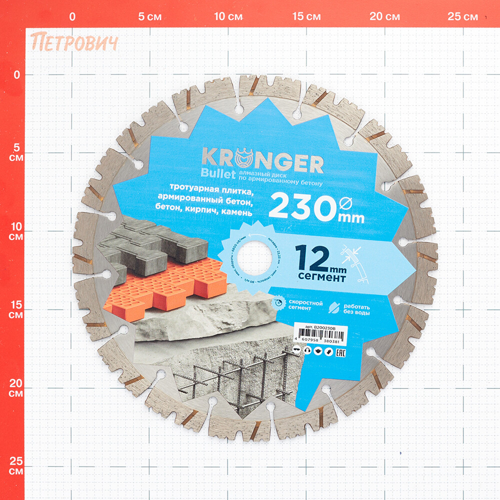 Диск алмазный по бетону Kronger Bullet 230х22,2х2,7 мм сегментный сухой рез (B200230B)