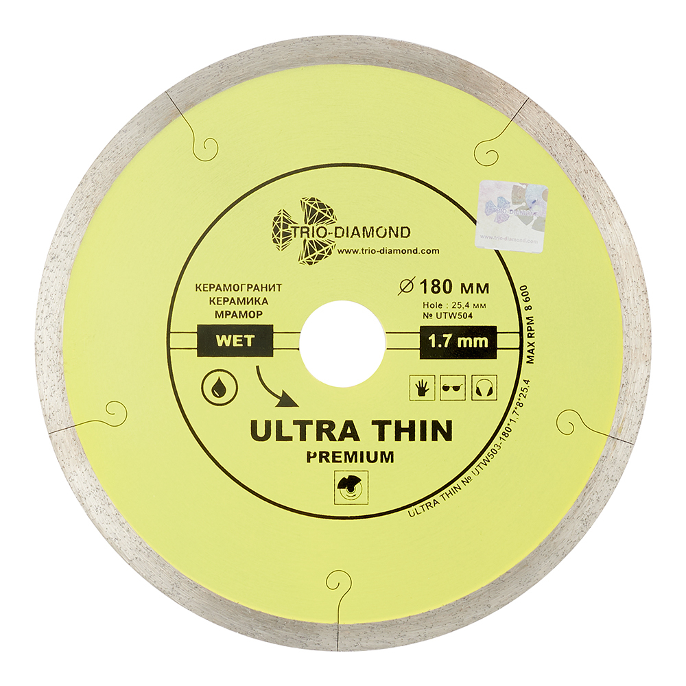 Диск алмазный по керамограниту Trio-Diamond Hot Pres 180×25,4×1,7 мм сплошной мокрый рез (UTW504)