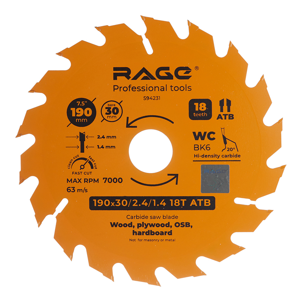 Диск пильный по дереву Rage by Vira Fast cut 190х30х1,4 мм 18 зубьев (594231)