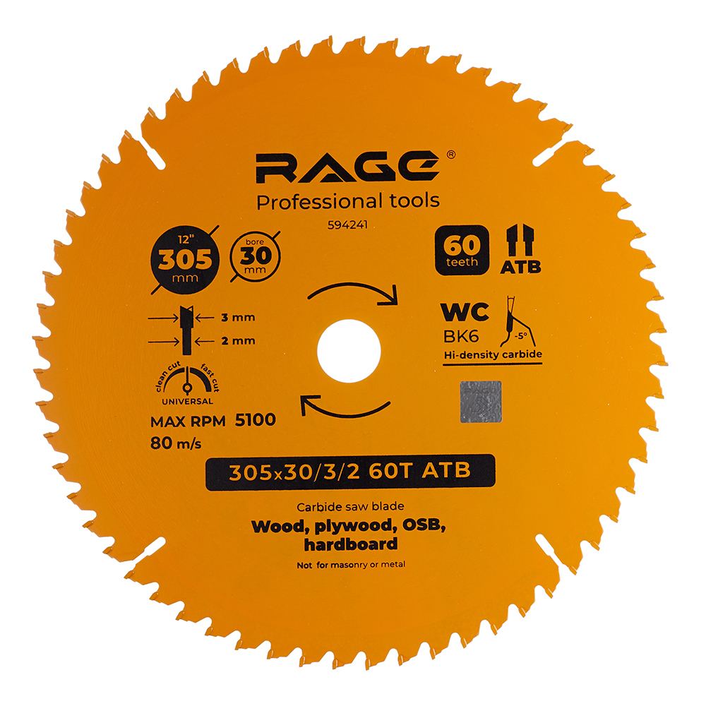 Диск пильный по дереву Rage by Vira Universal 305х30х2 мм 60 зубьев (594241)